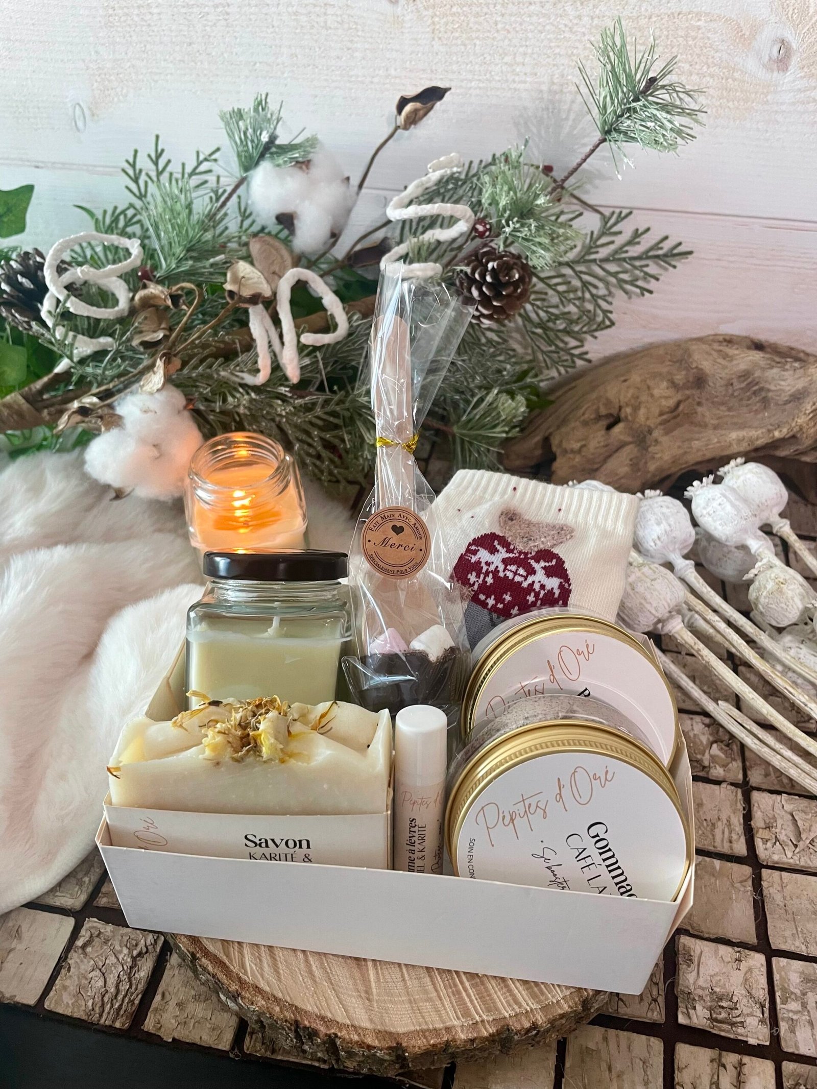 Avec la Bougie Pépites d’Oré, la Boule de Noël de l’Atelier Naoutet, le Beurre fouetté, le Gommage, et la cuillère en Chocolat & Guimauve de Ephémérie Patisserie, ce coffret pensé pour offrir un peu de cette magie qui réunit les cœurs autour du sapin.